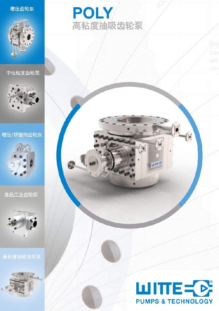 德国威特齿轮泵 WITTE PUMPS & TECHNOLOGY GmbH具有 CHEM /EXTRU/POLY/CHEM-MAGNET 等系列高精密产品,采用模块化针对性设计,根据泵的操作条件, CHEM /EXTRU/POLY 泵的零件具有可互换性。威特泵用户可根据实际需要,采取液相加热或电加热方式,密封可选择机械密封 , 填料密封, , 螺旋迷宫密封 ( 动密封 ) ,真空螺旋密封及特殊组合的密封配置。威特泵具有直齿、斜齿,以及威特**设计的高精度、低脉动、低温升、低剪切的人字形齿,针对不同的输送介质,在泵的材质选择上,威特可提供钛合金、铬镍合金、哈氏合金、钽合金,陶瓷,金属陶瓷的组合材质等。德国威特泵业技术有限公司代表高黏度流体和熔体齿轮泵****技术。WITTE泵设计——“高精度人字型齿”,斜齿轮大幅度降低了平行外啮合齿轮在高压下的脉动。而对于挤压、聚合、合成、化工等工艺中,要求泵的出口压力波动非常小时,如在高质量的管材、**次的薄膜、片材挤塑机上,使用“高精度人字型齿”能够更**的**压力和流量的波动。与塑料及聚合物工艺的传统设计相比,在同等排量下,“高精度人字型齿”允许使用加粗的轴颈。此结构可以降低进出压力对轴承的负载,同时压差范围更大,可以达到350Bar,泵进出口两端在高压下工作时,轴承温升很低。人字型齿轮的另一特点是对介质的剪切力较小。
